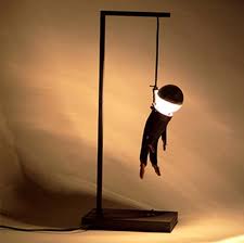 Love these sconces. Flanking the bed would be nice. And the table lamp. Wouldn't that look wonderful paired with Old Hangy on either side of the table? Too bad there's no mini-chandelier with blood red crystals dripping off of it to hang off the ceiling.